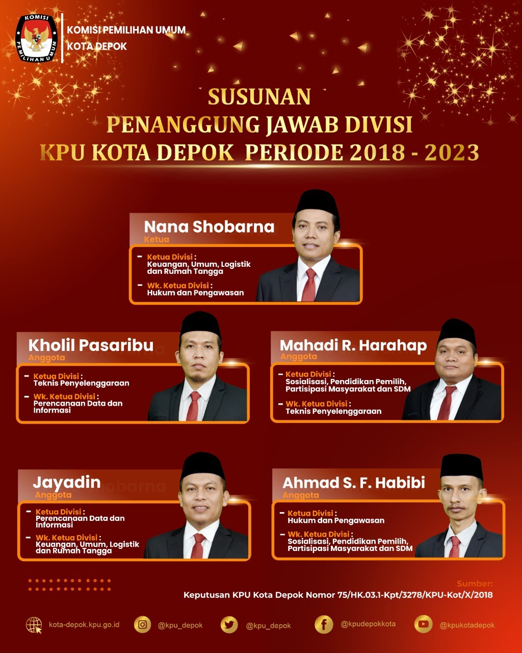 Susunan Penanggung Jawab Divisi KPU Depek 2018-2023 Rabu, 24 Januari 2018 07:00 516 Susunan Penanggung Jawab Divisi KPU Depek 2018-2023 Baca Selengkapnya