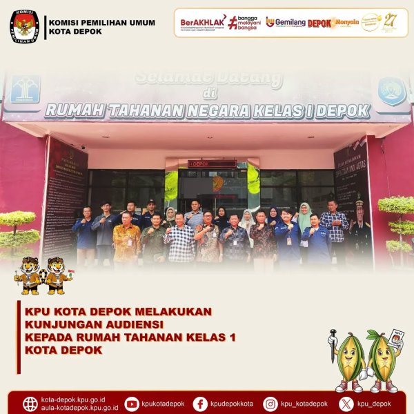 KPU Kota Depok Lakukan Kunjungan Audiensi ke Rumah Tahanan Kelas I Depok. KPU Kota Depok melakukan kunjungan audiensi ke Rumah Tahanan (Rutan) Kelas I Depok sebagai bagian dari upaya memastikan terpenuhinya hak pilih bagi seluruh warga negara tanpa terkecuali, termasuk warga binaan pemasyarakatan (WBP) yang akan menggunakan hak suaranya pada Pemilihan Wali Kota dan Wakil Wali Kota Depok Tahun 2024. Langkah ini menjadi wujud komitmen KPU dalam menjamin prinsip inklusivitas dan kesetaraan dalam pelaksanaan demokrasi di Kota Depok.
