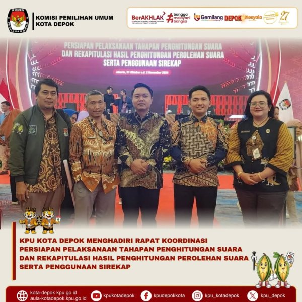 Dengan berpartisipasinya KPU Kota Depok dalam rakor ini, diharapkan proses rekapitulasi suara dapat terlaksana dengan transparansi tinggi, akuntabilitas terjaga, dan masyarakat memiliki kepercayaan penuh terhadap integritas penyelenggaraan Pilkada 2024.