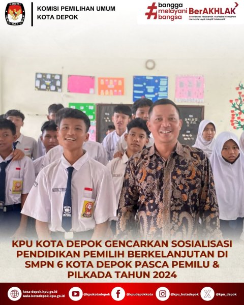 KPU KOTA DEPOK GENCARKAN SOSIALISASI PENDIDIKAN PEMILIH BERKELANJUTAN DI SMPN 6 KOTA DEPOK PASCA PEMILU & PILKADA TAHUN 2024