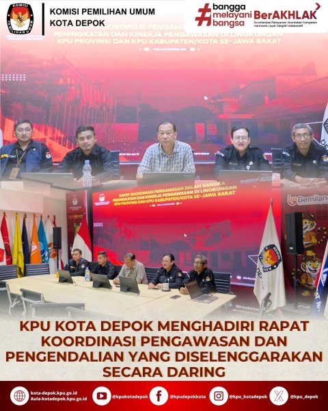 KPU Kota Depok berpartisipasi dalam Rapat Koordinasi Pengawasan dan Pengendalian yang diselenggarakan secara daring pada Kamis, 29 Oktober 2025, bersama seluruh KPU Kabupaten/Kota se-Jawa Barat. Acara ini menjadi momen penting untuk memperkuat sinergi dan koordinasi antara KPU di tingkat provinsi dan kabupaten/kota dalam memastikan setiap tahapan pemilu berjalan dengan transparan dan akuntabel.
