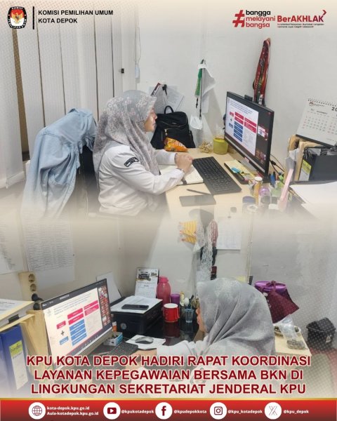 KPU Kota Depok mengikuti Rapat Koordinasi Layanan Kepegawaian yang diselenggarakan oleh Badan Kepegawaian Negara (BKN) bersama Sekretariat Jenderal Komisi Pemilihan Umum (KPU) secara daring. Kegiatan ini bertujuan untuk memperkuat tata kelola kepegawaian yang profesional, transparan, dan akuntabel di lingkungan KPU seluruh Indonesia, sekaligus menyelaraskan kebijakan dan prosedur kepegawaian yang berlaku di setiap tingkat KPU. Pada Senin, 3 November 2025, kegiatan ini berlangsung dengan penuh antusiasme dari seluruh peserta.