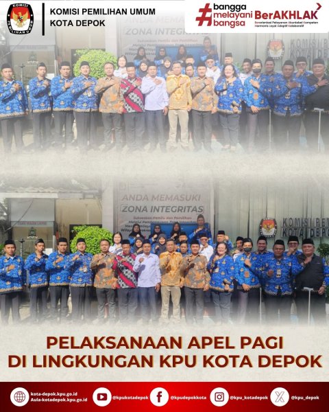 KPU KOTA DEPOK LAKSANAKAN APEL PAGI UNTUK TEGUHKAN DISIPLIN DAN PROFESIONALITAS PENYELENGGARA PEMILU