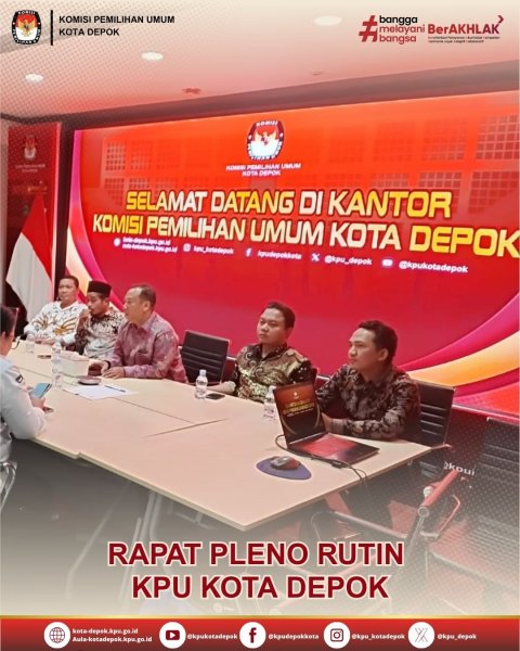 KPU Kota Depok mengadakan Rapat Pleno Rutin pada Senin, 24 November 2025. Dalam forum tersebut, Ketua KPU Kota Depok menekankan bahwa pleno merupakan sarana yang efektif untuk memperkuat koordinasi internal dan memastikan setiap agenda kelembagaan berjalan sesuai dengan rencana. "Pleno adalah kesempatan untuk memastikan bahwa setiap program yang kami jalankan selaras dan efektif, serta memastikan setiap divisi memiliki pemahaman yang sama mengenai arah dan tujuan yang ingin dicapai," ujar Willi Sumarlin, Ketua KPU Kota Depok.