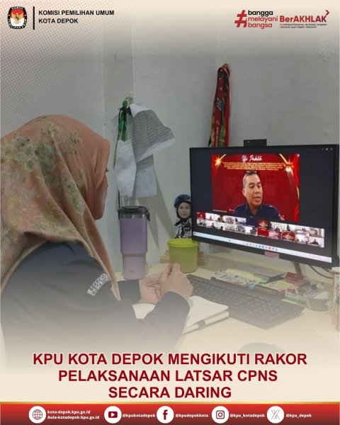 KPU Kota Depok mengikuti Rapat Koordinasi (Rakor) Pelaksanaan Pelatihan Dasar Calon Pegawai Negeri Sipil (CPNS) yang diselenggarakan oleh Sekretariat Jenderal KPU bersama KPU Provinsi/KIP Aceh serta KPU/KIP Kabupaten/Kota pada Selasa, 25 November 2025. Kegiatan yang dilaksanakan secara daring melalui Zoom Meeting ini diikuti oleh Kepala dan staf Sub Bagian Parmas SDM KPU Kota Depok.