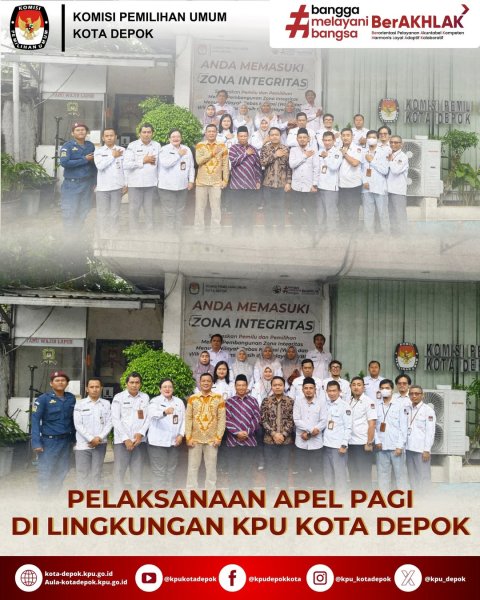 KPU Kota Depok menyelenggarakan apeln pagi pada Senin, 8 Desember 2025, yang diikuti oleh Ketua dan Anggota KPU Kota Depok serta seluruh jajaran Sekretariat. Kegiatan rutin ini menjadi sarana penguatan disiplin, konsolidasi, serta koordinasi internal guna memastikan tugas-tugas kelembagaan terlaksana secara tertib, terukur, dan sesuai dengan ketentuan peraturan perundang-undangan.