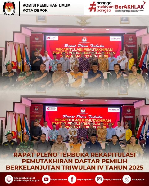 KPU KOTA DEPOK SELENGGARAKAN RAPAT PLENO TERBUKA REKAPITULASI PEMUTAKHIRAN DATA PEMILIH BERKELANJUTAN (PDPB) TRIWULAN IV TAHUN 2025