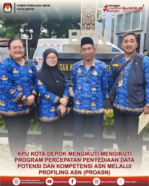 Komisi Pemilihan Umum (KPU) Kota Depok turut serta dalam Program Percepatan Penyediaan Data Potensi dan Kompetensi Aparatur Sipil Negara (ASN) yang diselenggarakan oleh Badan Kepegawaian Negara (BKN) pada Senin, 22 Desember 2025. Program ini dilaksanakan di Kantor Pusat BKN, Jakarta Timur, dan menjadi bagian dari upaya strategis dalam meningkatkan kualitas sumber daya manusia di lingkungan pemerintahan, khususnya di sektor penyelenggaraan pemilu.