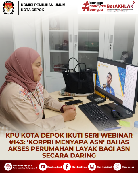 KPU Kota Depok turut berpartisipasi dalam Seri Webinar #143 "KORPRI Menyapa ASN" yang mengangkat isu kritis mengenai akses perumahan layak bagi ASN. Webinar ini digelar secara daring dan menjadi wadah diskusi yang membahas masalah mendalam yang dihadapi oleh Aparatur Sipil Negara (ASN) dalam memperoleh perumahan yang layak dan terjangkau. Tema ini sangat relevan di tengah meningkatnya harga properti dan terbatasnya ketersediaan lahan yang semakin membebani ASN di Indonesia.