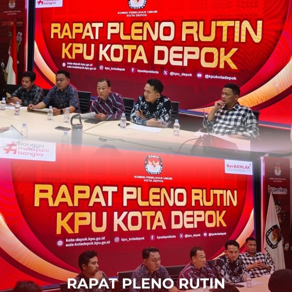 Depok - KPU Kota Depok melaksanakan Rapat Pleno Rutin pada Rabu, 04 Februari 2026, bertempat di Kantor KPU Kota Depok, sebagai bagian dari upaya konsolidasi internal dan penguatan koordinasi kelembagaan dalam pelaksanaan tugas dan fungsi organisasi.
