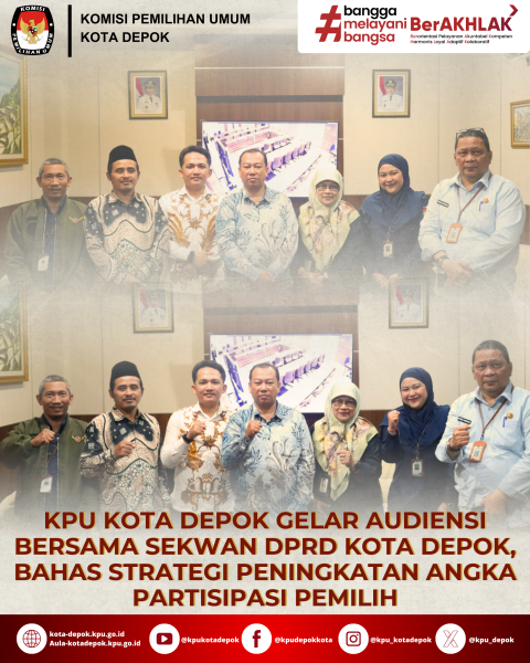KPU Kota Depok menyatakan akan terus membuka ruang koordinasi lintas sektor dengan para pemangku kepentingan guna memperkuat kepercayaan publik dan meningkatkan kualitas partisipasi pemilih. Melalui kolaborasi yang terarah dan program yang tepat sasaran, diharapkan angka partisipasi pemilih di Kota Depok dapat meningkat, sejalan dengan upaya memperkuat demokrasi dan mendorong keterlibatan warga secara aktif dalam proses pemil