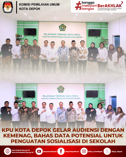 Depok - Komisi Pemilihan Umum (KPU) Kota Depok menggelar audiensi bersama Kementerian Agama (Kemenag) Kota Depok guna memperkuat koordinasi lintas lembaga dalam mendukung program sosialisasi dan pendidikan pemilih, khususnya di lingkungan sekolah. Pertemuan ini menjadi forum strategis untuk menyelaraskan langkah, memperkuat dukungan kelembagaan, sekaligus memastikan kegiatan sosialisasi berjalan lebih terarah dan tepat sasaran. Selasa, 10 Februari 2026.