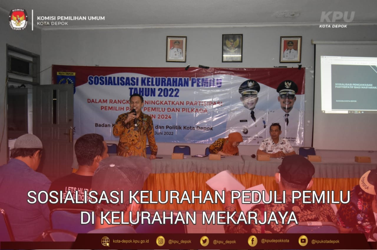Margonda kota-depok.kpu.go.id Komisioner KPU Kota Depok Jayadin menjadi narasumber pada acara Sosialisasi Kelurahan Peduli Pemilu yang di gelar Badan Kesbangpol Kota Depok. Kegiatan yang dilaksanakan di aula Kelurahan Mekarjaya pada hari Jumat, 24 Juni 2022 dihadiri oleh 100 orang terdiri dari RT/RW, tokoh agama, tokoh perempuan dan tokoh pemuda. Dalam paparan materinya Jayadin menjelaskan, peningkatan kepedulian masyarakat kepada penyelenggaraan pemilu harus diawali dengan memberikan edukasi terkait kepemiluan kepada para tokoh masyarakat, sehingga para tokoh tersebut memiliki bekal yang cukup untuk mengedukasi warga masyarakat di wilahnya untuk peduli terhadap penyelenggaraan pemilu. Dengan memberikan edukasi yang benar, diharapkan akan menumbuhkan kepedulian masyarakat terhadap penyelenggaraan pemilu dan dapat menjatuhkan pilihan sesuai nurani masing-masing, tidak sebagai insan politik yang pasif yang “memposisikan diri” atau “diposisikan” sebagai obyek, tetapi masyarakat sebagai Pemilih diharapkan mampu menjadi subyek dalam pelaksanaan Pemilu. Turut Hadir dalam kegiatan tersebut Lurah Mekarjaya, Anggota Bawaslu Kota Depok dan Pejabat dari Pemkot Depok. (MC 002)