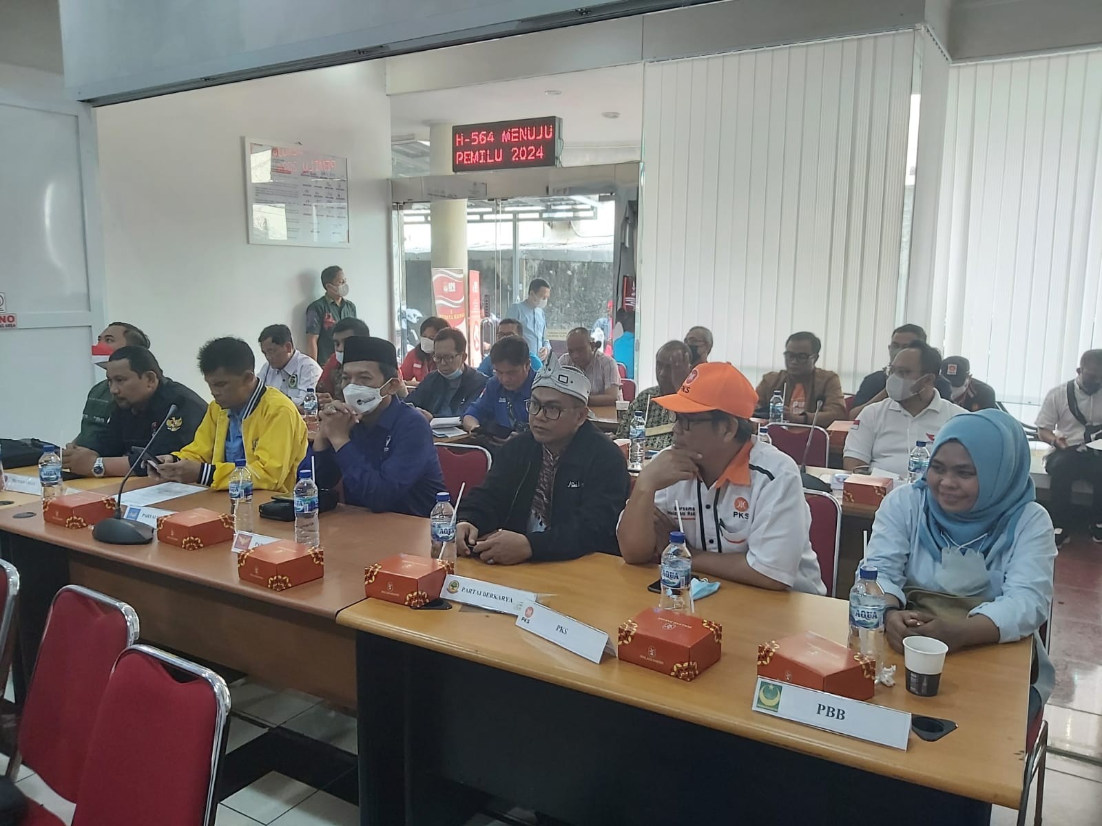Margonda, kota-depok.kpu.go.id KPU Kota Depok menyelenggarakan Sosialisasi Peraturan KPU No. 4 Tahun 2022, Jumat (29/07/2022) di Aula KPU Kota Depok Jl. Margonda No 379. Sebanyak 21 Parpol tingkat Kota Depok memenuhi ruang rapat kantor KPU Kota Depok. Ketua KPU Kota Depok, Nana Shobarna membuka acara dan dilanjutkan penyampaian materi oleh Anggota KPU Kota Depok yang membidangi Teknis Penyelenggaraan Pemilu, Kholil Pasaribu. Dalam kesempatan tersebut Kholil, memaparkan point-point penting yg terkandung dalam PKPU no 4 Tahun 2022, diantaranya klausul yang menjelaskan tentang verfikasi administrasi dan faktual terhadap partai politik calon peserta pemilu. Turut hadir dalam kegiatan ini, Ketua Bawaslu Kota Depok dan forkopimda Kota Depok. (MC 002)
