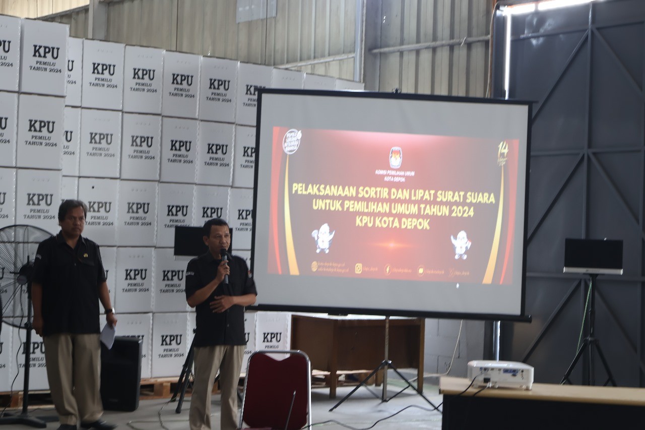 kota-depok.kpu.go.id Margonda, Ketua KPU Kota Depok, Willi Sumarlin didampingi Anggota dan Sekretaris KPU Kota Depok membuka resmi kegiatan sortir dan lipat surat suara pemilu Tahun 2024 di Gudang KPU Kota Depok Jl Raya Bogor KM 41,2 CIbinong, Pabuaran, Kec. Cibinong, Kabupaten Bogor, Kamis (11/1/2024). Willi menjelaskan, surat suara akan di sortir terlebih dulu sebelum dilipat, hal ini untuk mengetahui kondisi surat suara baik atau rusak. Sebanyak 5 juta lebih surat suara akan disortir dan dilipat oleh lebih dari 300 orang masyarakat Kota Depok dan sekitarnya yang telah mendaftar sebagai petugas sortir dan lipat surat suara serta ditargetkan tanggal 24 Januari 2024 seluruh surat suara sudah selesai di sortir dan dilipat. Kegiatan yang mendapatkan pengamanan ketat dari Kepolisian ini dihadiri juga oleh Ketua Bawaslu dan unsur Forkopimda Kota Depok.