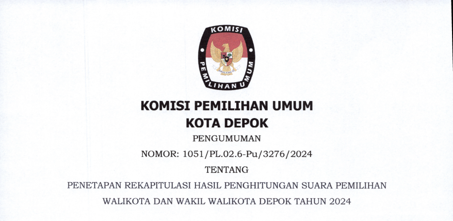 kota-depok.kpu.go.id- Penetapan Rekapitulasi Hasil Penghitungan Suara pada Pemilihan Wali Kota dan Wakil Wali Kota Depok Tahun 2024