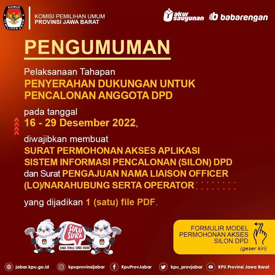 PENGUMUMAN PELAKSANAAN TAHAPAN PENYERAHAN DUKUNGAN UNTUK PENCALONAN ANGGOTA DPD