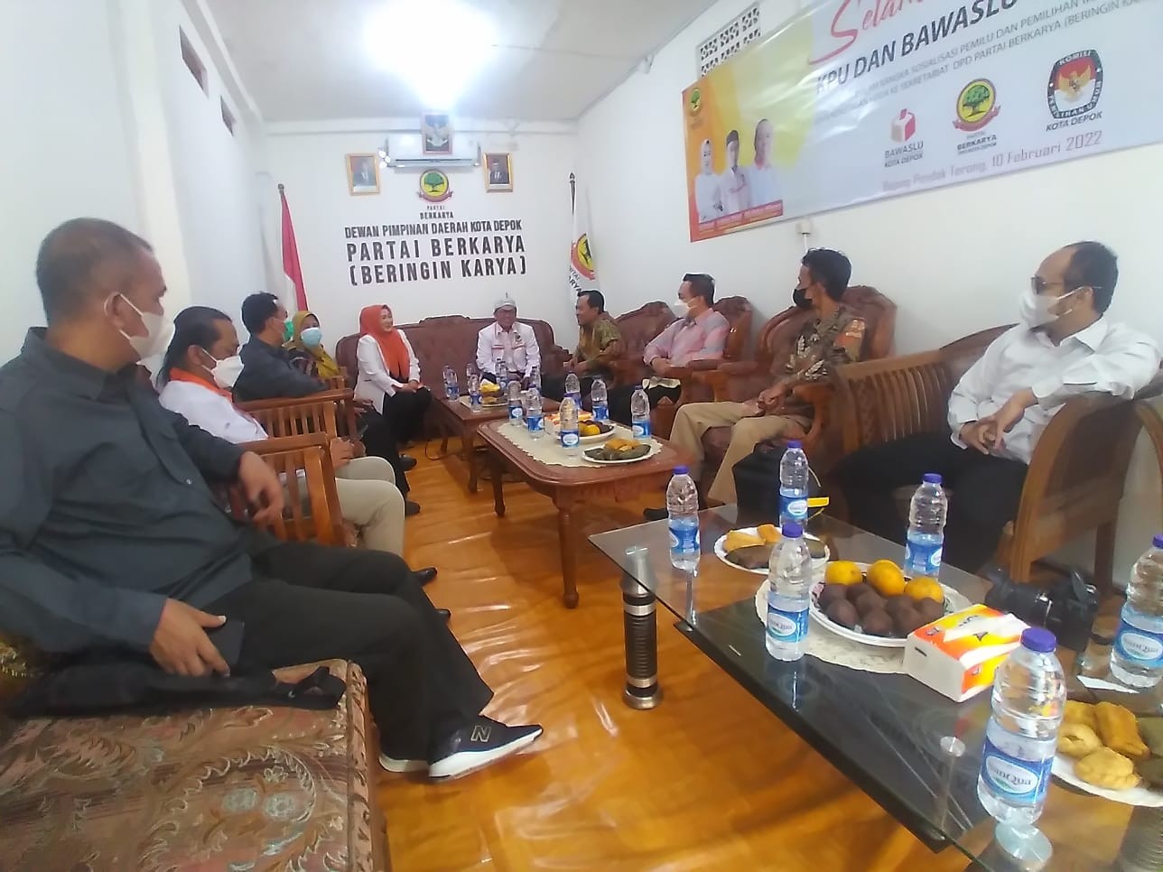 Cilodong, kota-depok.go.id. Melanjutkan kegiatan roadshow KPU Kota Depok mengunjungi kantor DPC Partai Amanat Nasional ( PAN ) di daerah GDC Kota Kembang pada hari Kamis, 17 Februari 2022. Kedatangan tim KPU Kota Depok disambut hangat Ketua DPC PAN H. Igun Sumarno yang didampingi Sekretaris dan Bendahara Partai. Pada kesempatan itu Igun menyampaikan apresisasinya dan berharap kegiatan ini dapat membangun sinergitas antara penyelenggara dengan peserta Pemilu, Igun juga berharap kehadiran KPU Kota Depok akan memberikan pencerahan kepada kader partai yang hadir sehingga dapat menjadi bekal untuk persiapan menghadapi tahapan Pemilu dan Pemelihan Serentak Tahun 2024. Sementara itu Ketua KPU Kota Depok Nana Shobarna yang didampingi komisioner Kholilullah Pasaribu dan Kasubag Teknis dan Hupmas Hadi Rakhmat mengatakan bahwa kunjungan ke DPC PAN dalam rangka silaturahmi dan untuk mensosialisasikan hari pemungutan dan penghitungan suara yang telah ditetapkan oleh KPU RI. Nana juga mengingatkan agar partai politik sudah mulai mempersiapkan diri untuk menghadapi tahapan awal Pemilu Tahun 2024, salah satunya yaitu pendaftaran partai politik peserta Pemilu. Turut hadir pada kegiatan tersebut para pengurus tingkat kecamatan dan kader partai. (MC02)