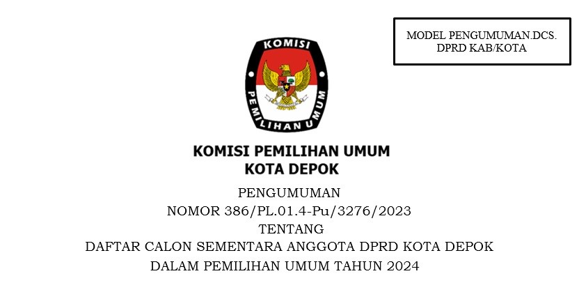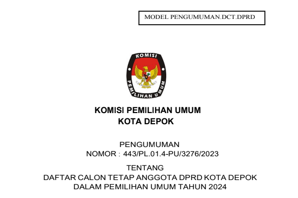 Keputusan KPU Kota Depok tentang Penetapan DCS Anggota DPRD Pemilu 2024 ......................KLIK DISINI