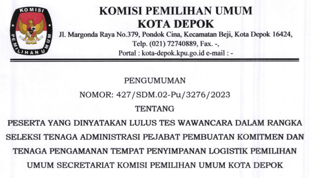 Informasi lebih lanjut dapat menghubungi helpdesk pencalonan KPU Kota Kota Depok
